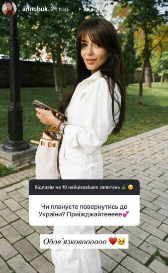 Андрійчук, яка від початку повномасштабного вторгнення країни-агресора РФ в Україну живе в Іспанії, додала, що має намір повернутися в Україну, але не уточнила, коли саме запланувала поїздку.