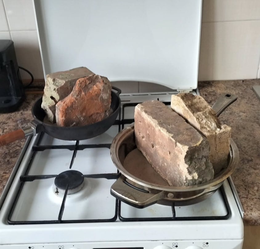 "Київ. ХХІ століття. Опалення. У пательню – пісок, на пісок – цегла. На жаль, лише для газових плит", – написала вона.