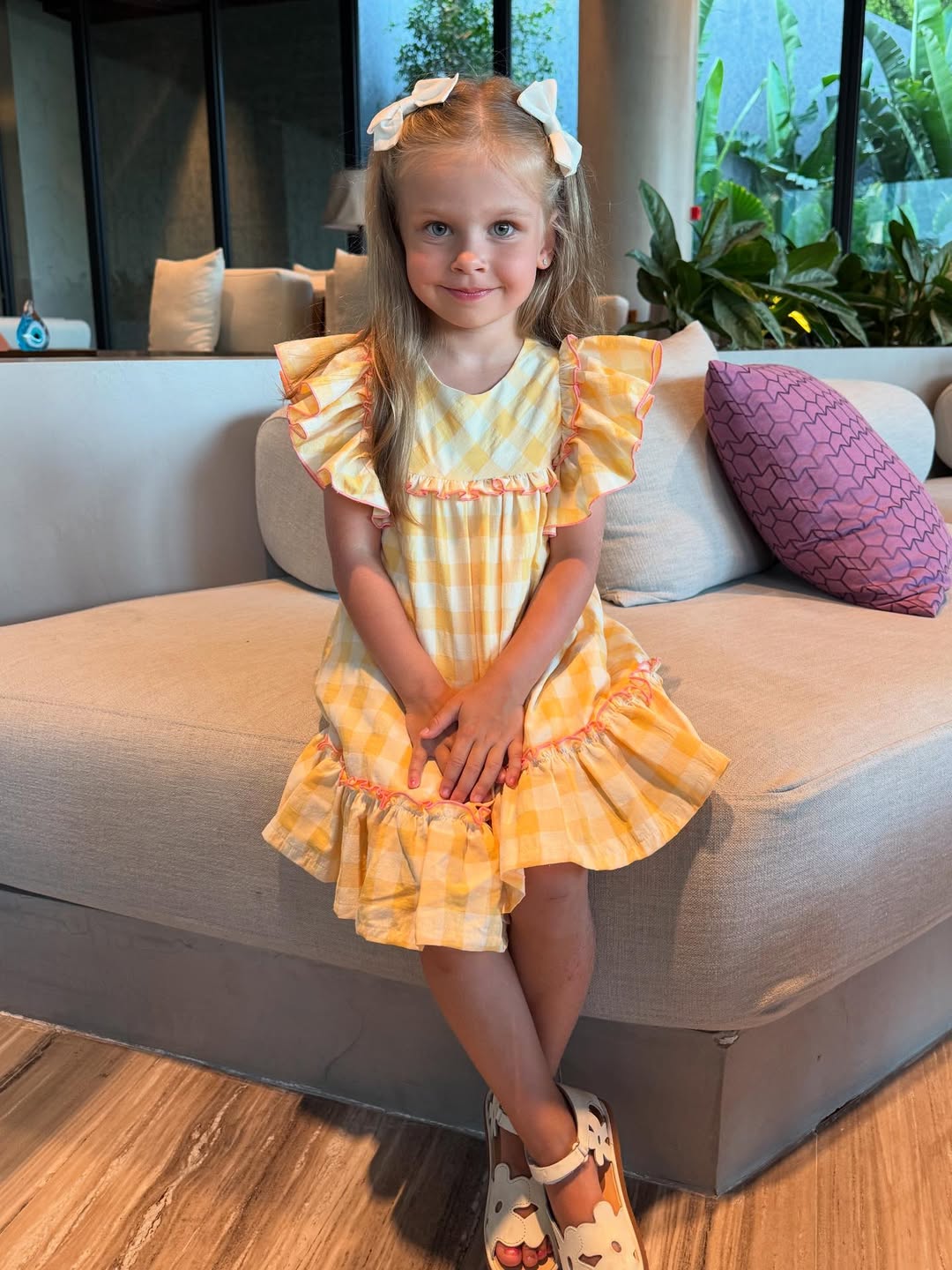 Також він показав фото доньки, яка позує в жовто-білій сукні.
