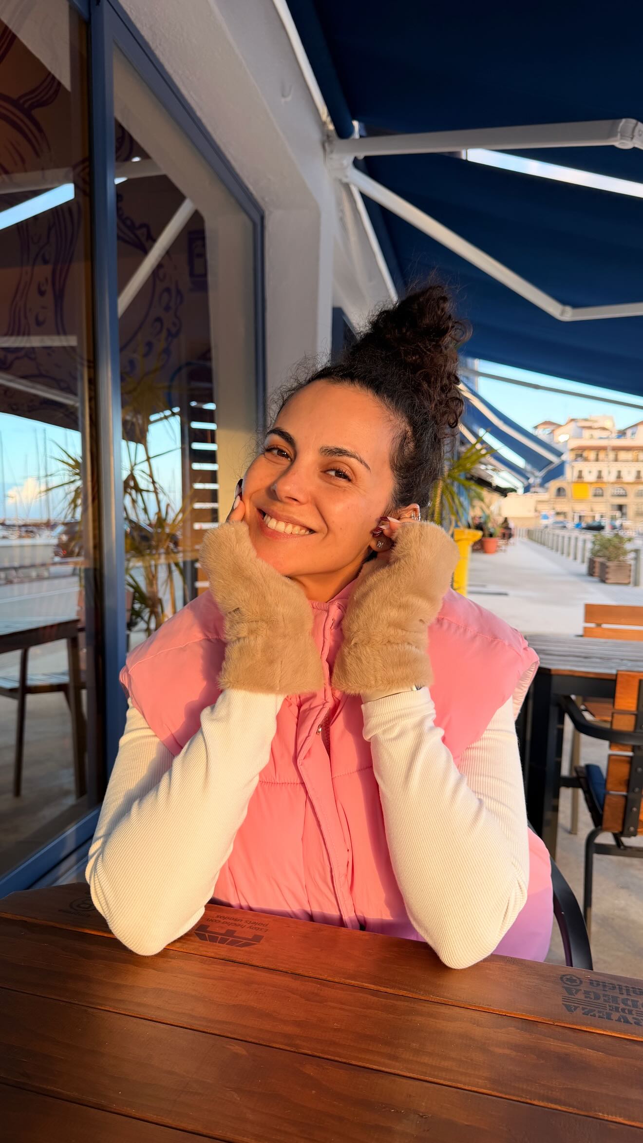 Ще на одному знімку вона показалася на вулиці, сидячи за столом у кафе. Каменських усміхалася, позуючи в хутряних рукавичках.