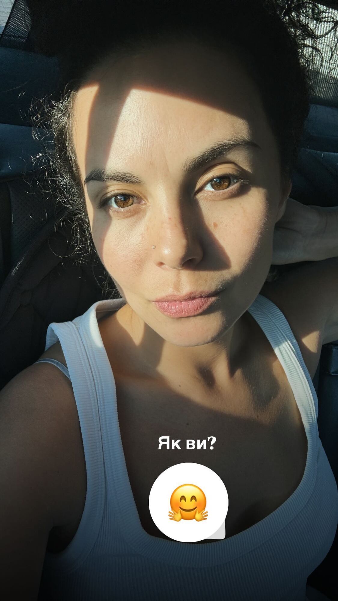Каменських знялася в білій трикотажній майці та показала обличчя без видимого макіяжу.