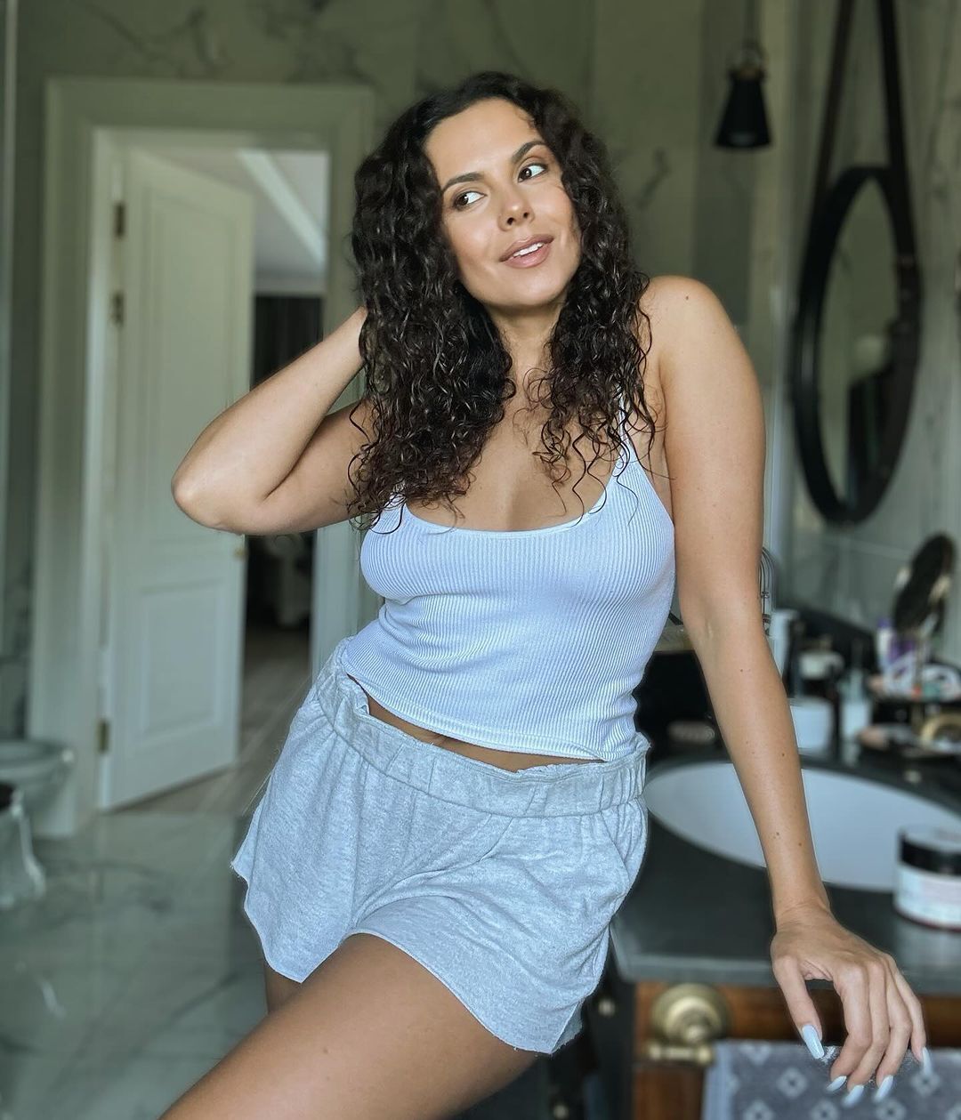 Українська співачка Настя Каменських 17 липня розмістила в Instagram фото, на яких позує в трикотажних шортах і майці у ванній кімнаті.
