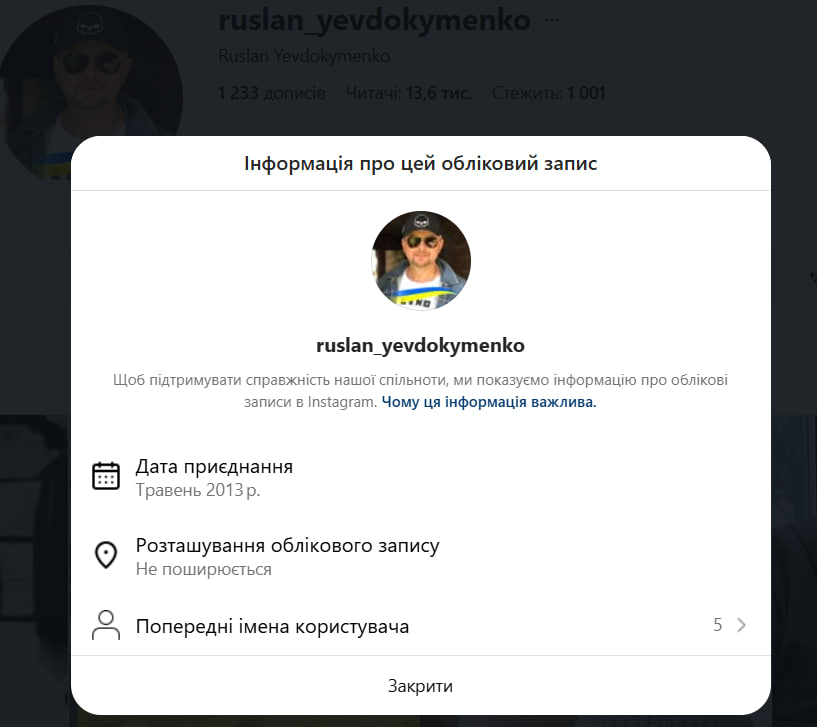 Руслан Євдокименко весь цей час мовчить про своє місцеперебування і навіть приховав геолокацію своєї сторінки в Instagram, яка показує, у якій саме країні перебуває користувач.