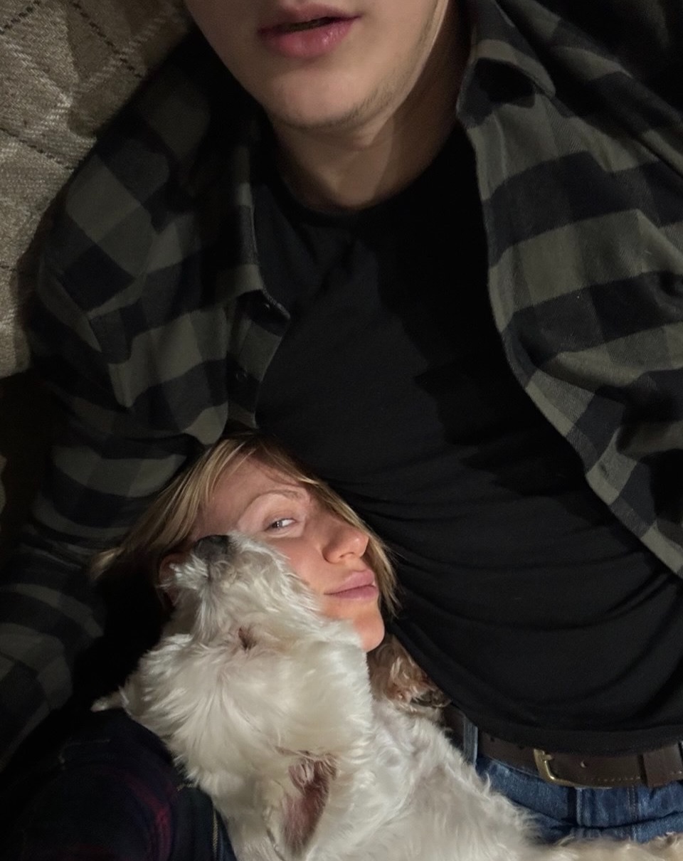 На іншому фото ведучу зафіксовано в обіймах із Бабчуком. Під час зйомки вона також тримає на руках свого домашнього улюбленця – собаку на кличку Рафік.