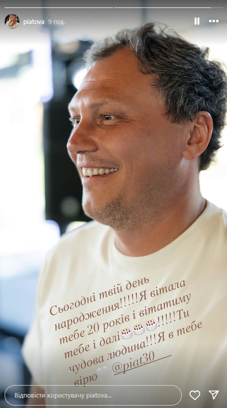 Пятова заявила, що, попри розлучення, вона й далі вітатиме колишнього чоловіка з днем народження, як робила 20 років цього дня. Пятову 28 червня виповнився 41 рік.