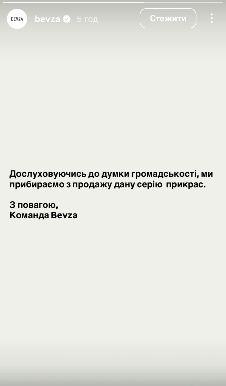 "Дослуховуючись до думки громадськості, ми прибираємо з продажу дану серію прикрас", – підкреслив бренд в Instagram Stories.