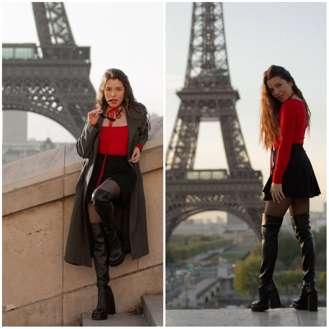 Співачка показала світлини, на яких позує в короткій спідниці й червоній кофті на тлі Ейфелевої вежі.