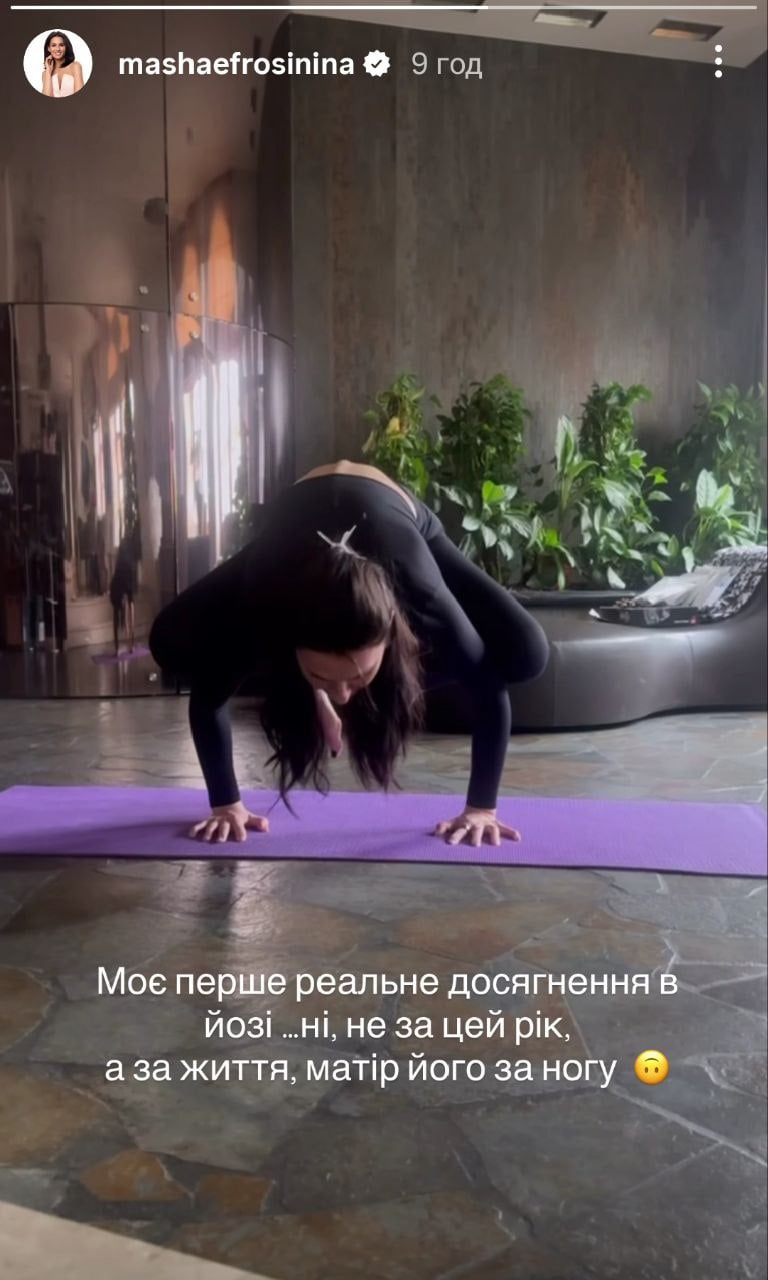 Українська ведуча Маша Єфросиніна 30 грудня в Instagram Stories показала, що досягла значних успіхів у заняттях із йоги.