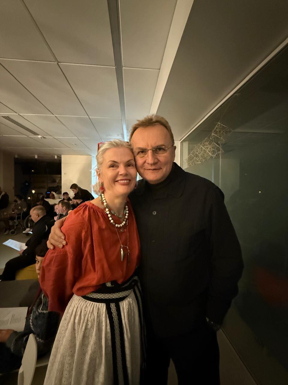 "Щоб привітати дружину із днем ангела, її спершу треба знайти. Де б ви думали? Наші хлопці й дівчата в Unbroken уже вчать колядки, бо скоро Різдво. Там і знайшов", – підписав фото мер Львова.