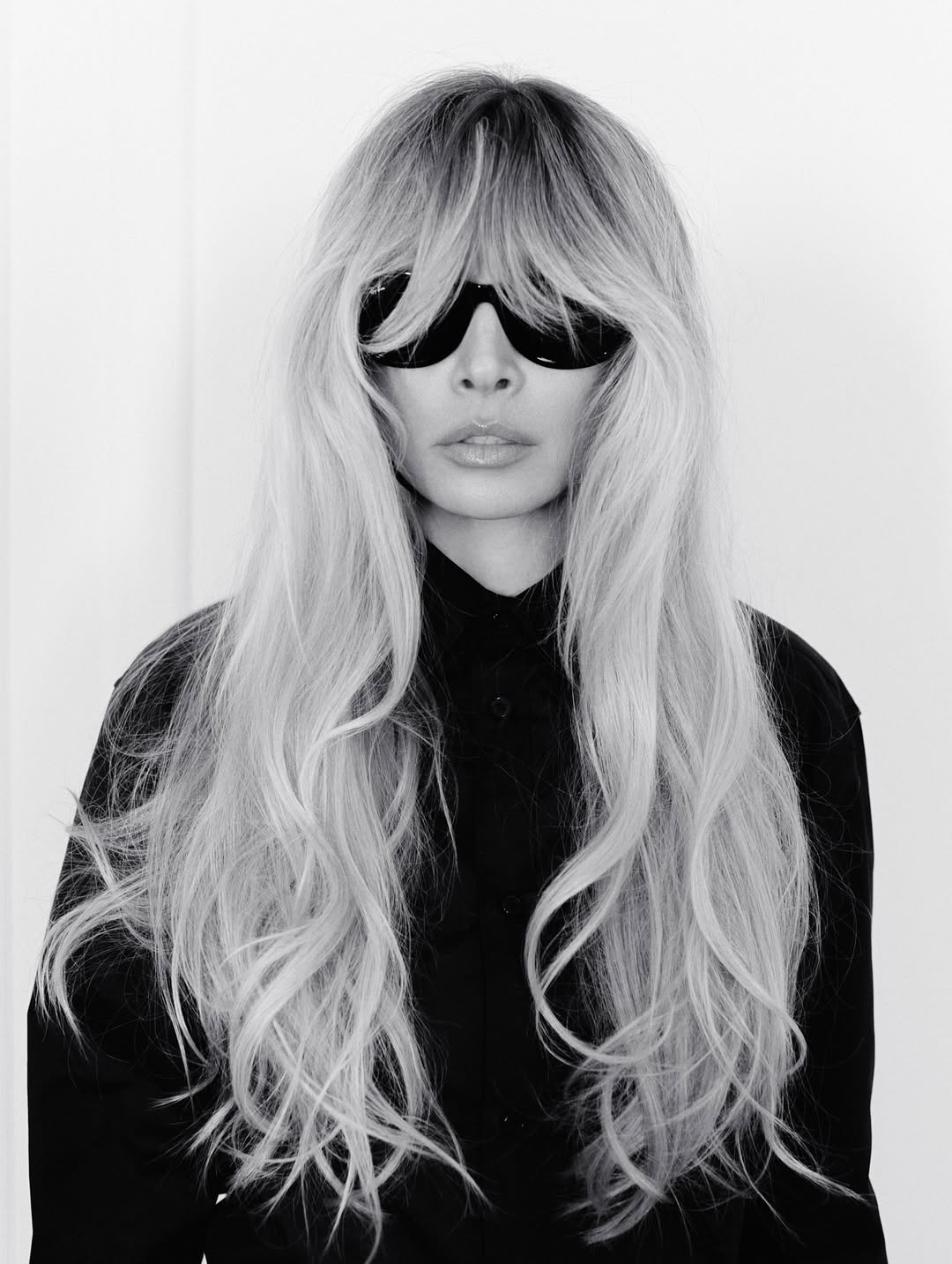 Співачка знялася в масивних чорних окулярах і з розпущеним волоссям, зачесавши чуб наперед.