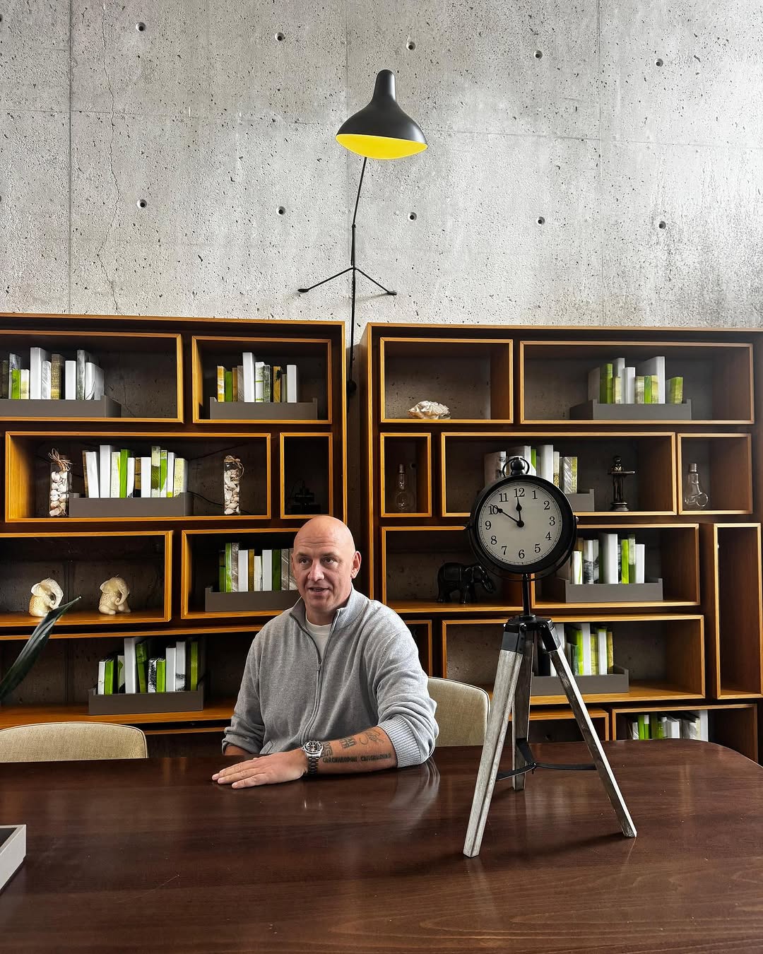 Репер знявся в сірій кофті. На руці артиста – масивний годинник. Також Потап продемонстрував дещо зі своїх численних татуювань.