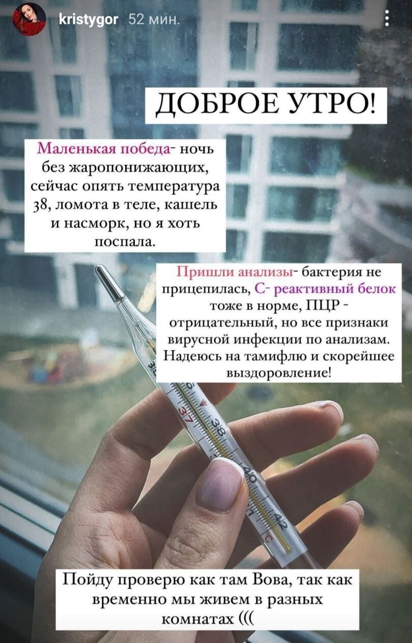 Дружина українського ведучого Володимира Остапчука, яка заразилася грипом, нотаріуска і блогерка Христина Остапчук 5 січня в Instagram Stories повідомила, що вони з чоловіком тимчасово живуть окремо.