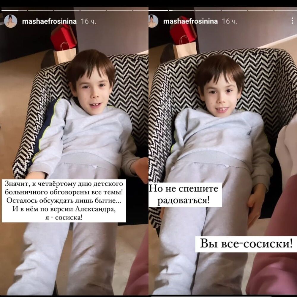 Українська телеведуча Маша Єфросиніна 2 лютого в Instagram Stories опублікувала коротке відео свого діалогу "про буття" із семирічним сином Олександром.
