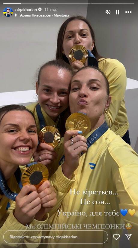 "Не віриться. Це сон. Україно, для тебе. Ми – олімпійські чемпіонки", – написала Харлан.