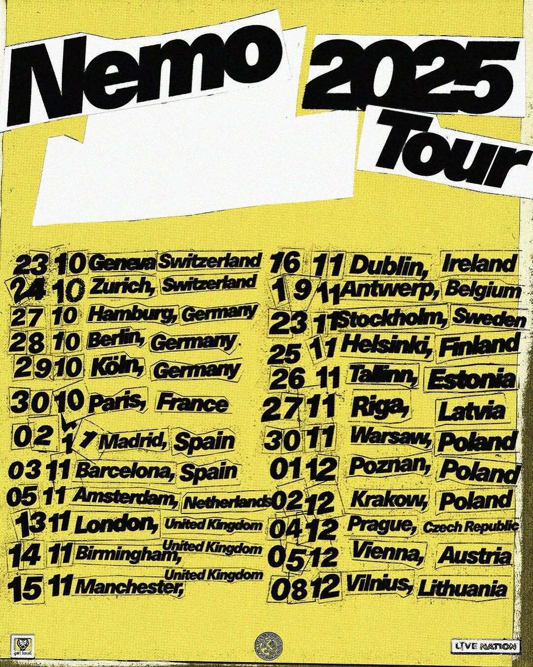 Під час концертного туру Nemo мали виступити й у Києві, але після перенесення гастролей на осінь нової дати виступу в українській столиці на афіші не вказано. За їхніми словами, нові дати виступів в Україні, а також у Греції оголосять найближчим часом.