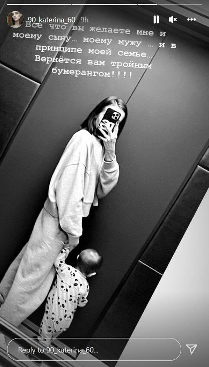 Невістка телеведучої Оксани Марченко – дружини кума президента РФ Володимира Путіна, голови політради партії "Опозиційна платформа – За життя", нардепа Віктора Медведчука – Катерина у Stories Instagram 13 квітня розмістила чорно-біле селфі зі своїм сином.