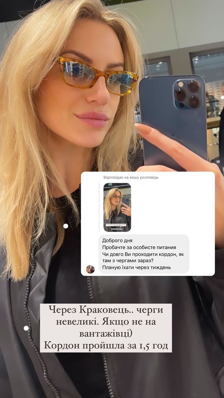 "Через Краковець. Черги невеликі, якщо не на вантажівці. Кордон пройшла за півтори години", – відповіла телеведуча.