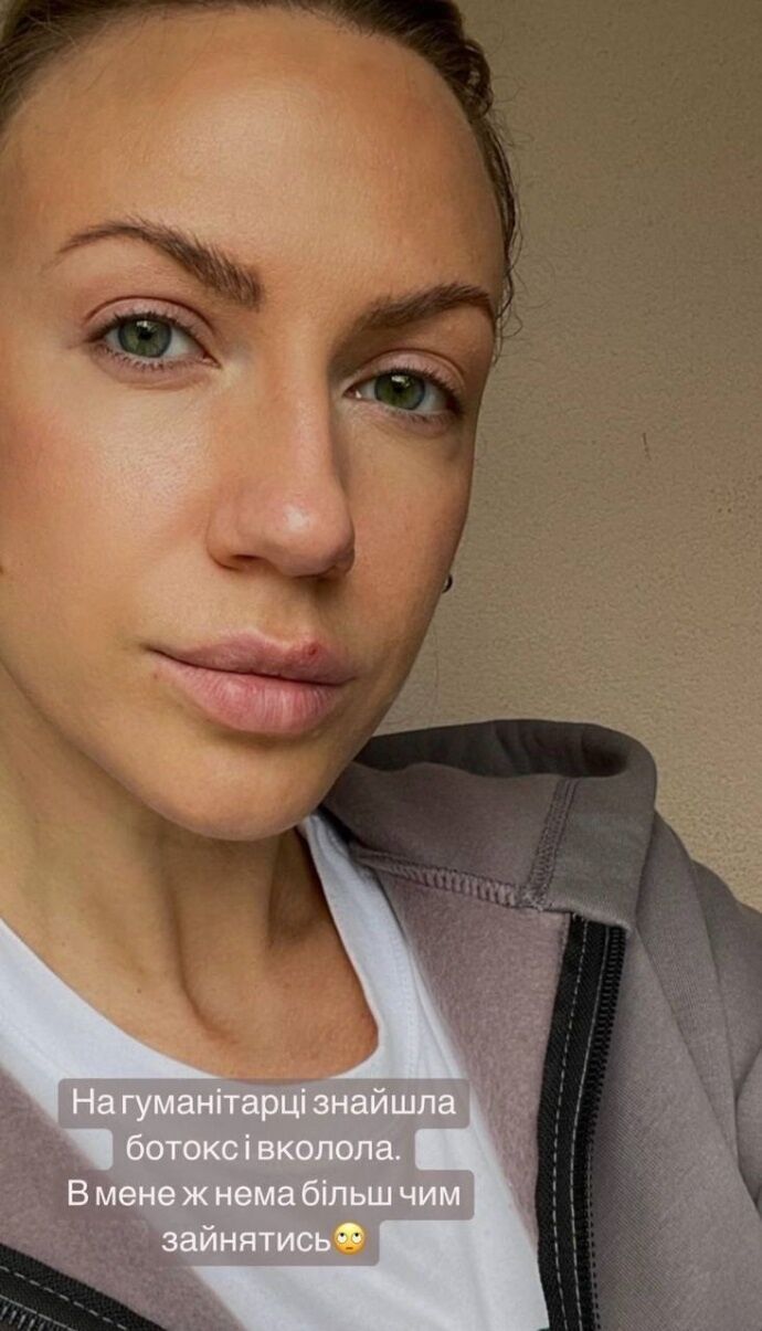 "На гуманітарці знайшла ботокс і вколола. У мене ж нема чим більш зайнятись", – написала вона.