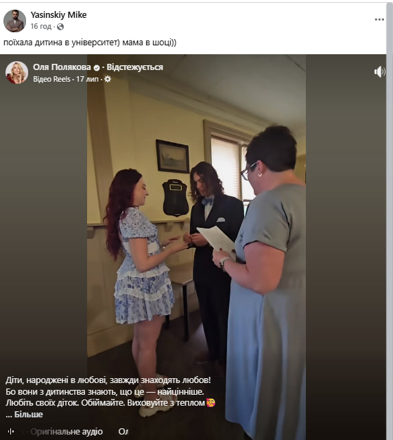 Продюсер Михайло Ясинський 17 липня у Facebook прокоментував заміжжя 20-річної доньки української співачки Олі Полякової.
