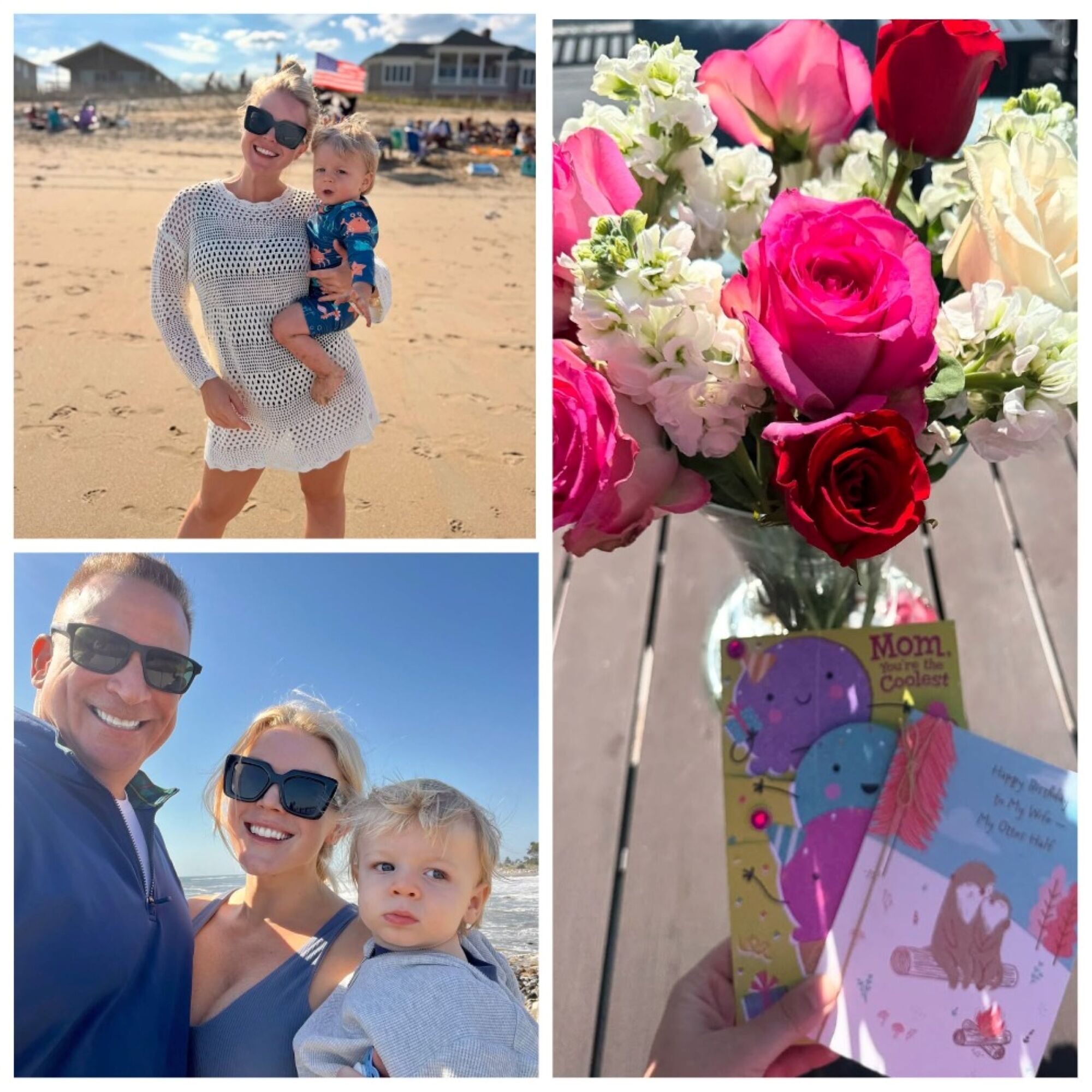 На знімках її знято на пляжі в компанії чоловіка та їхнього однорічного сина. Лівітт також показала квіти і листівки, які від них отримала.