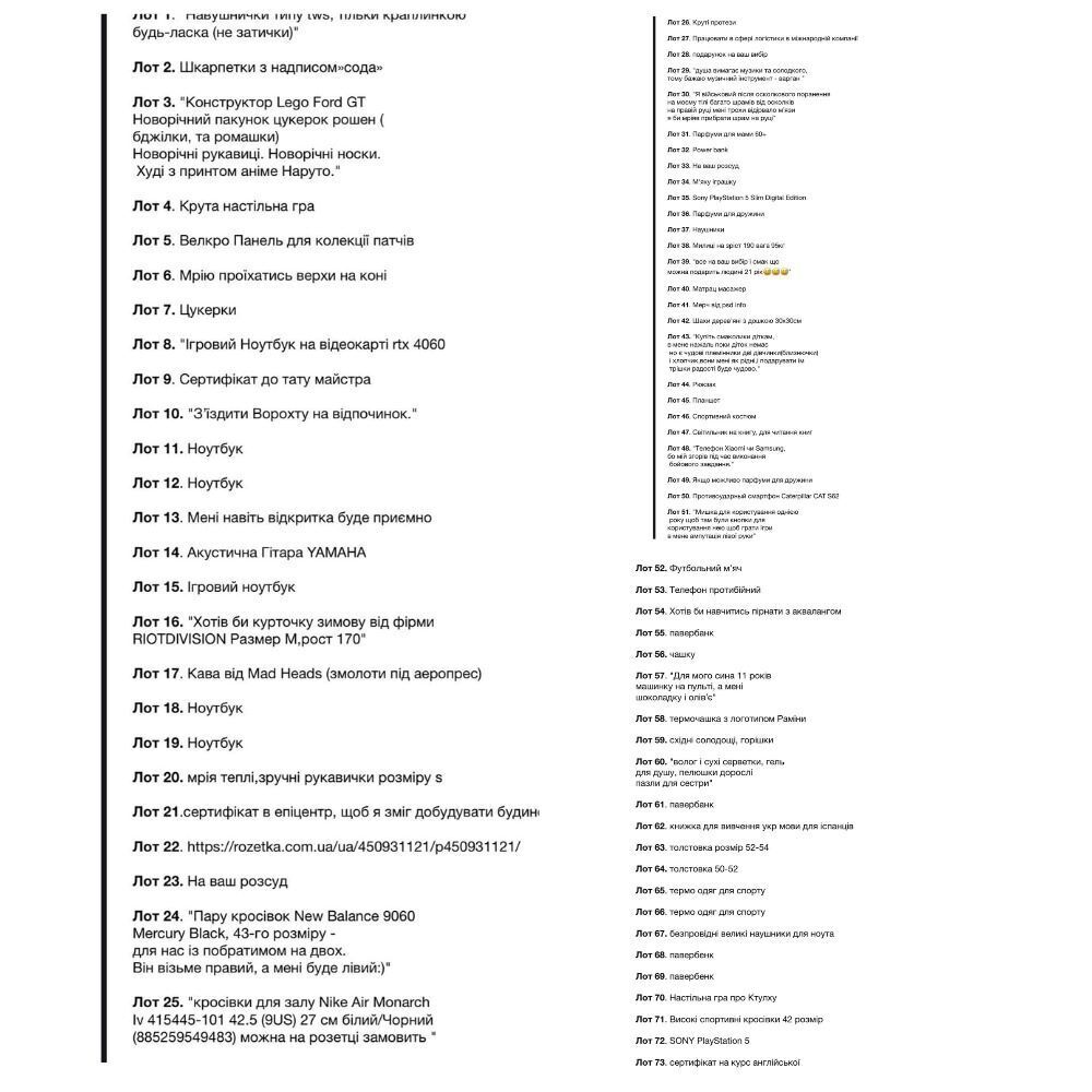 "У списку також були лоти: побути із сім'єю вдома в новорічну ніч, поспілкуватися особисто з Раміною. Ці бажання не потребують матеріальних вкладень, намагатимемося втілити їх у життя, – додала Есхакзай. – Пишу цей пост і хвилююся, але я вірю, що ви всі – чудові люди, які вміють об'єднуватися та робити дива".