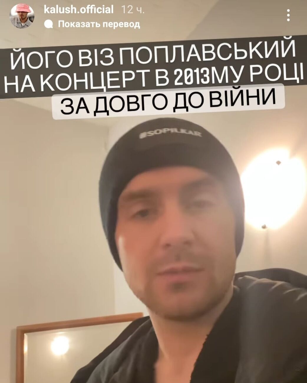 Музичук відреагував на публікацію у мережі – того самого дня в Instagram Stories групи Kalush він записав звернення, у якому заявив, що знімок зробили 2013 року, коли він відвідав столицю РФ у складі масовки.