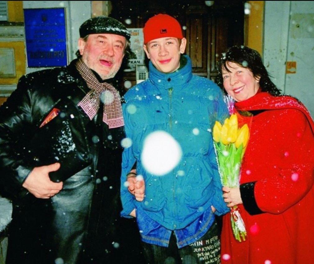 Також він показав архівну світлину, на якій стоїть біля під’їзду з Богданом і Ларисою Ступками.