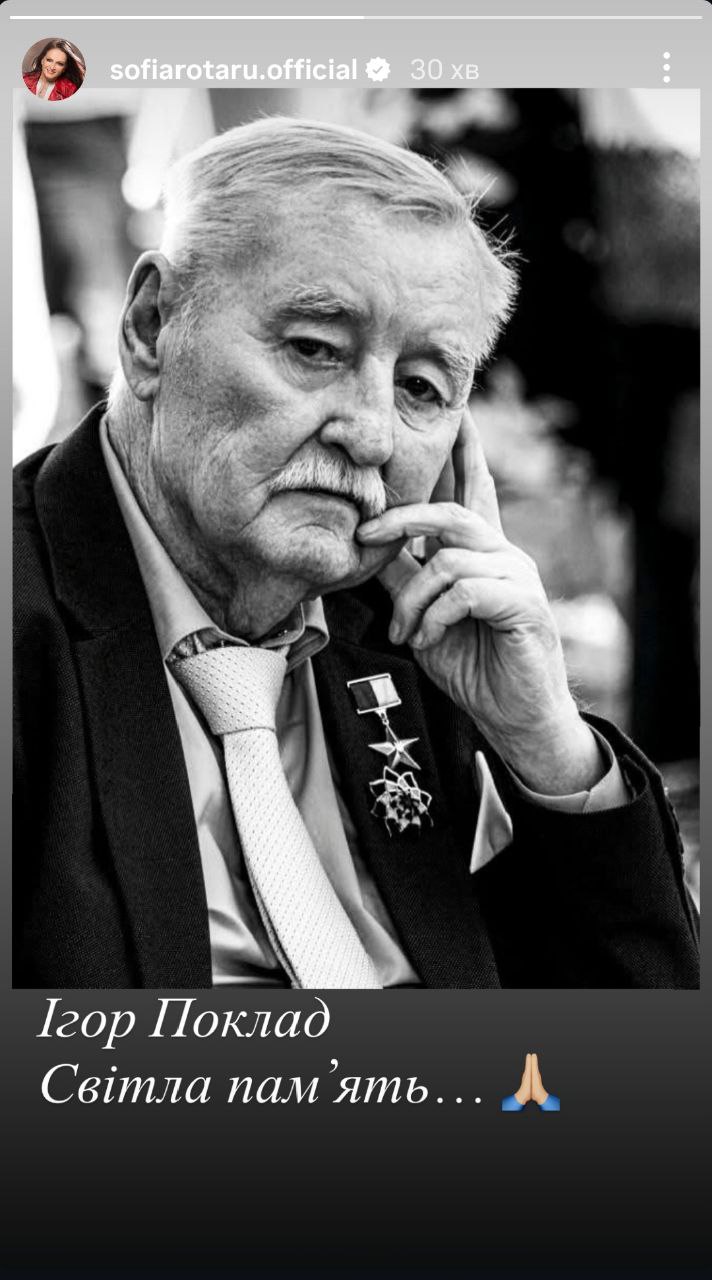 "Перестало битися серце видатного українського композитора, нашого класика, чистої і скромної людини, Героя України Ігоря Поклада. Наші улюблені пісні – це він, мелодії з улюблених фільмів – він! Яке щастя, що 10 років тому Ігоря Дмитровича, який уникав камер і вже боровся з невиліковним захворюванням, я вмовив на велике сповідальне інтерв'ю", – поділився журналіст і опублікував фото з композитором.
