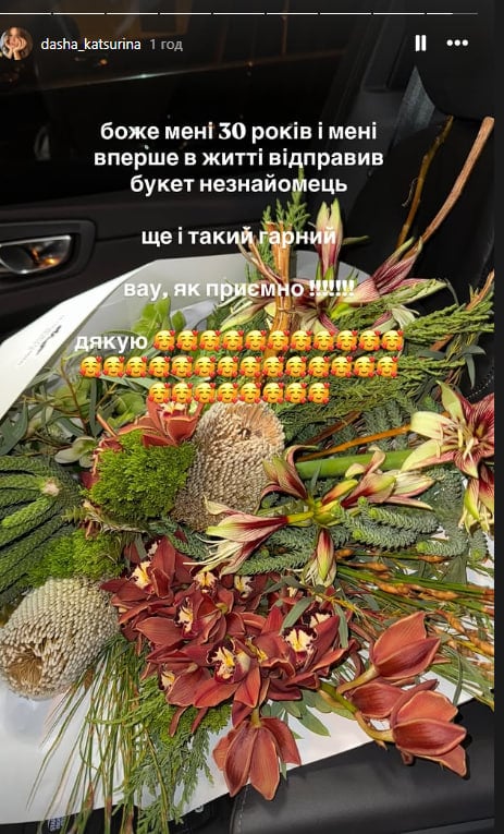 "Ще й такий гарний". Кацуріна похвалилася букетом від свого нового шанувальника