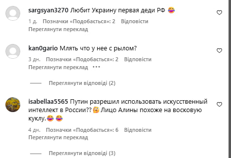 "Путін дозволив використовувати штучний інтелект у Росії? Обличчя схоже на воскову ляльку", – зазначили підписники сторінки.