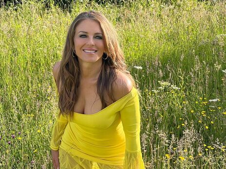 Герлі знялася в жовтому бікіні, лежачи на галявині і граючись зі своїми собаками.