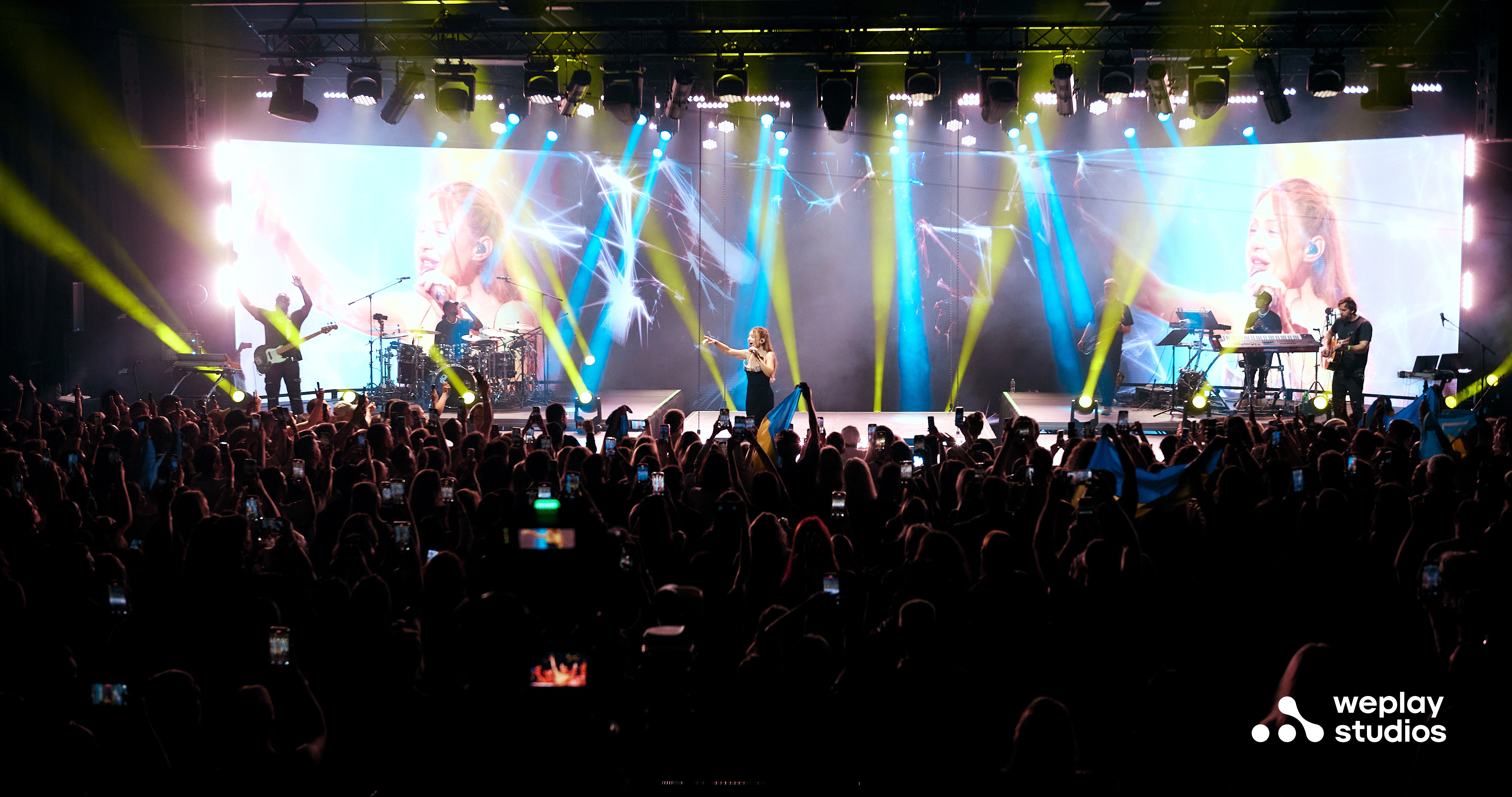 Під час концерту використали освітлення синьо-жовтими кольорами.
