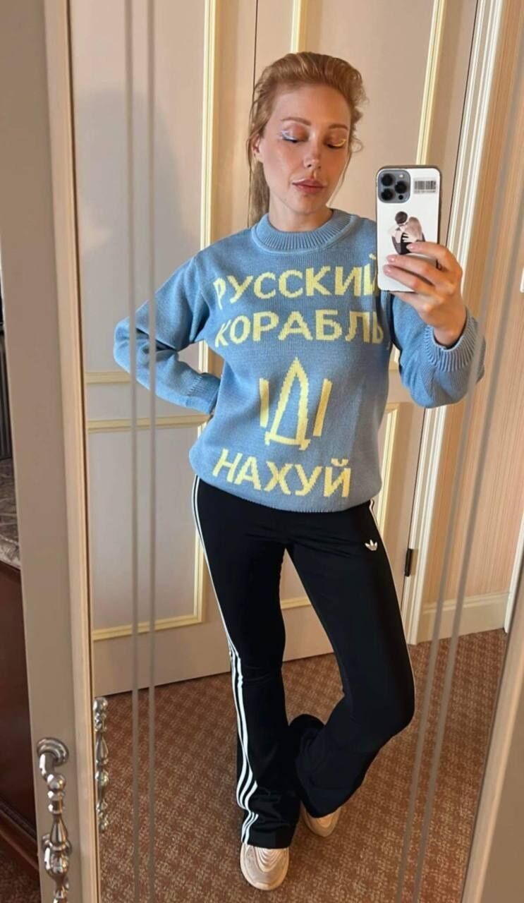 Українська співачка Тіна Кароль 9 травня у Stories Instagram опублікувала ролик, у якому крутилася перед дзеркалом у светрі з написом "Русский корабль, иди нах...й".