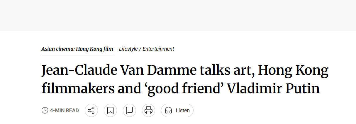 Бельгійський актор Жан-Клод Ван Дам 17 березня в коментарі виданню South China Morning Post похвалився, що нелегітимний президент країни-агресора РФ Володимир Путін є його "добрим другом".