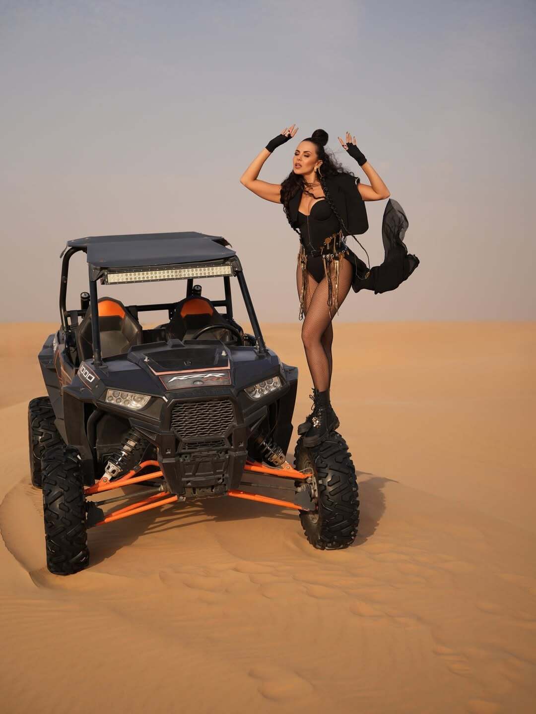 Співачка знялася в пустелі, позуючи в чорному корсеті й трусах. Образ вона доповнила жилетом, рукавичками й масивними черевиками.
