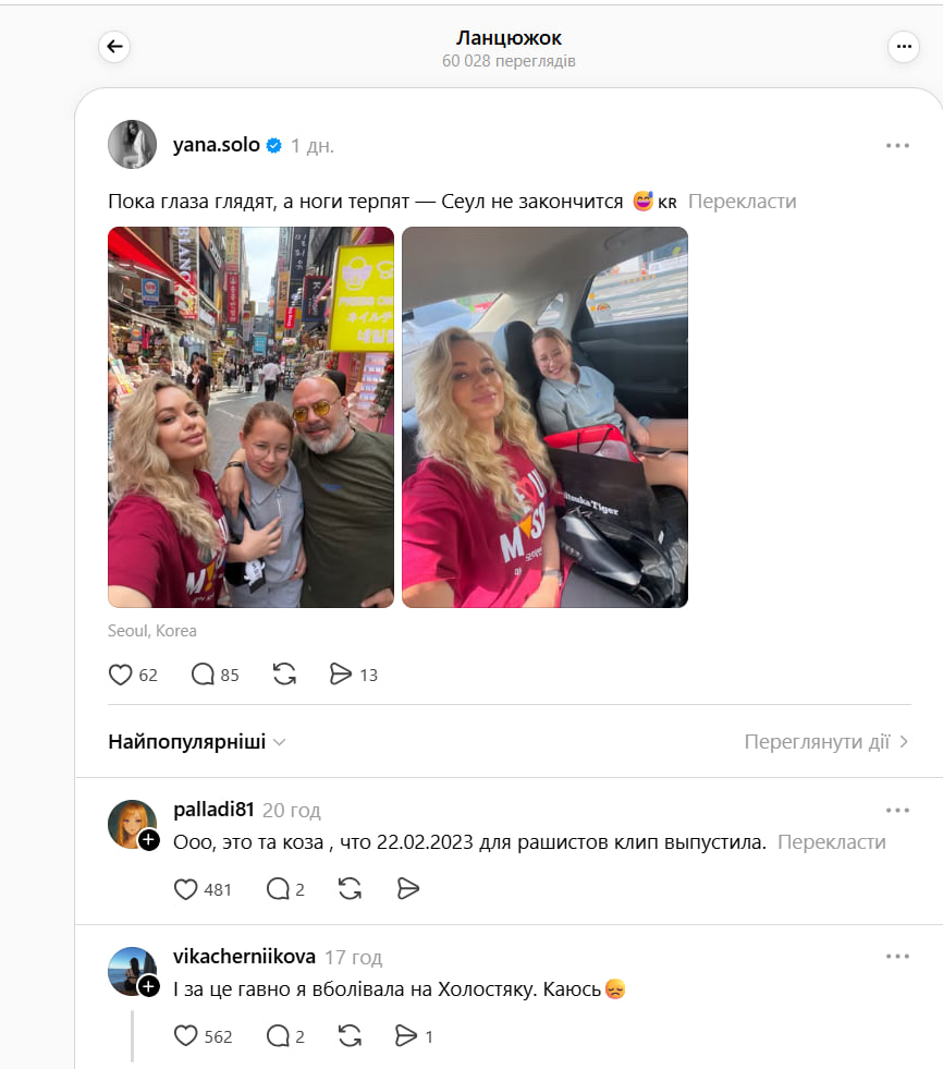 Ексучасниця шоу "Холостяк" на СТБ, співачка Soyana (Яна Соломко) нарвалася на критику з боку українців, з'явившись 14 квітня в соцмережі Threads.