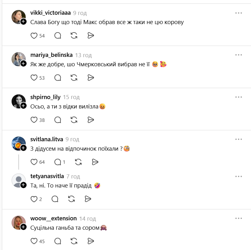 "Як добре, що [головний герой шоу "Холостяк" Максим] Чмерковський вибрав не її", – написали в мережі.