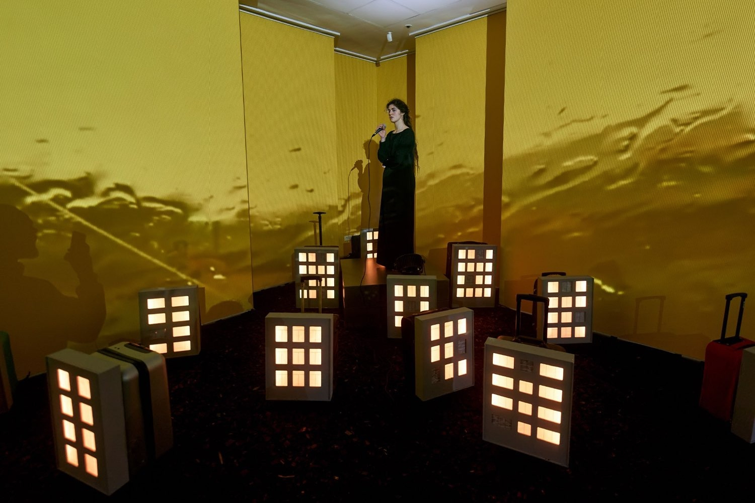 "Одне із завдань, яке ми намагалися втілити, – знайти засоби, як коментувати події війни, реагувати на них, залучати до діалогу країни світу. Три інсталяції тут формують триптих, присвячений втраті дому й питанню: де дім? Дім – це стіни? Це близькі? Це ми? Перша інсталяція – "Місто". Зруйноване місто. Місто пам'яті. Місто порожніх будинків. Друга складається з валіз – "Стовп" зруйнованого життя, серед яких є артефакти музею. Третя – стіна "Біженці", де в кожній фігурі ховається емоція, історія людини, яка виїхала. Є й відеоінсталяція, яка має відкритий фінал. Це питання про те, як жити під час війни", – розповів театральний куратор Gogolfest Андрій Палатний про ідею й задум, цілі й творчу реалізацію експозиції.