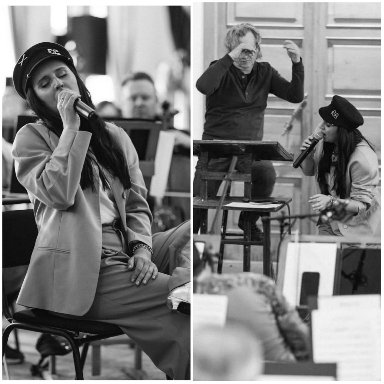 Також Джамала показала чорно-білі світлини, на яких її зафіксовано на тлі Національного симфонічного оркестру України, у супроводі якого відбудеться концерт Qırım.