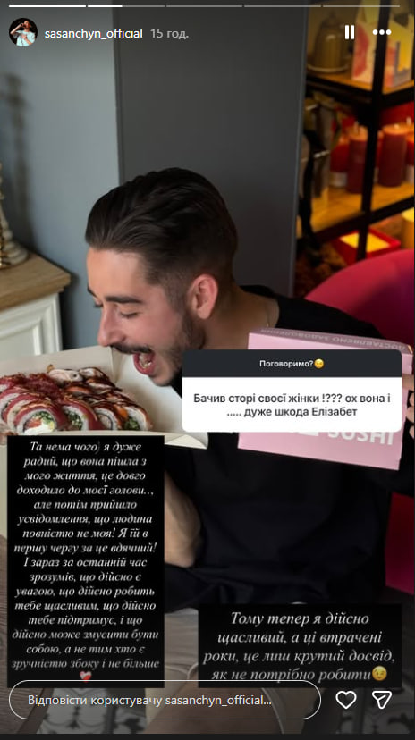 "Довго доходило". Сасанчин, який одружився в 19 років, назвав свій перший шлюб помилкою
