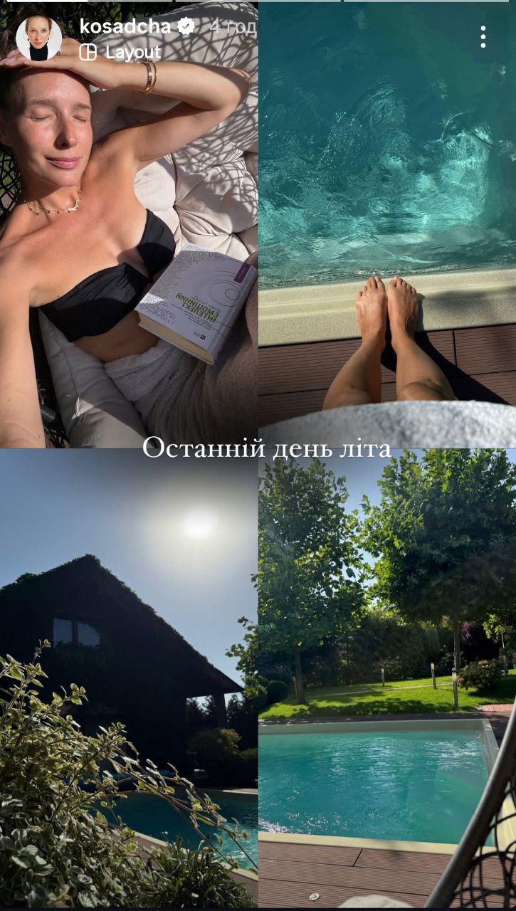 Ведуча Катя Осадча опублікувала колаж із фото, на яких показала, що в останній день літа відпочивала вдома.