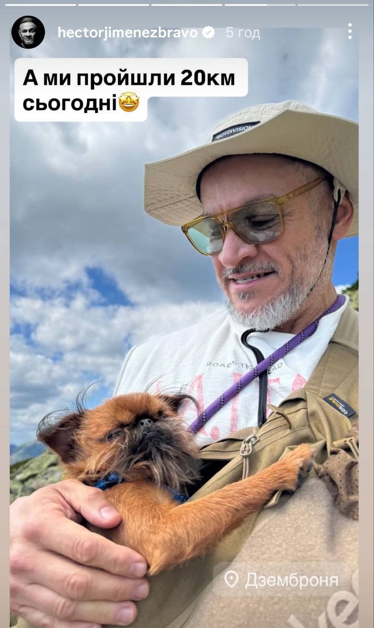 Кулінар Ектор Хіменес-Браво разом зі своїм собакою пройшов 20 км поблизу гірського села Дземброня Івано-Франківської області.