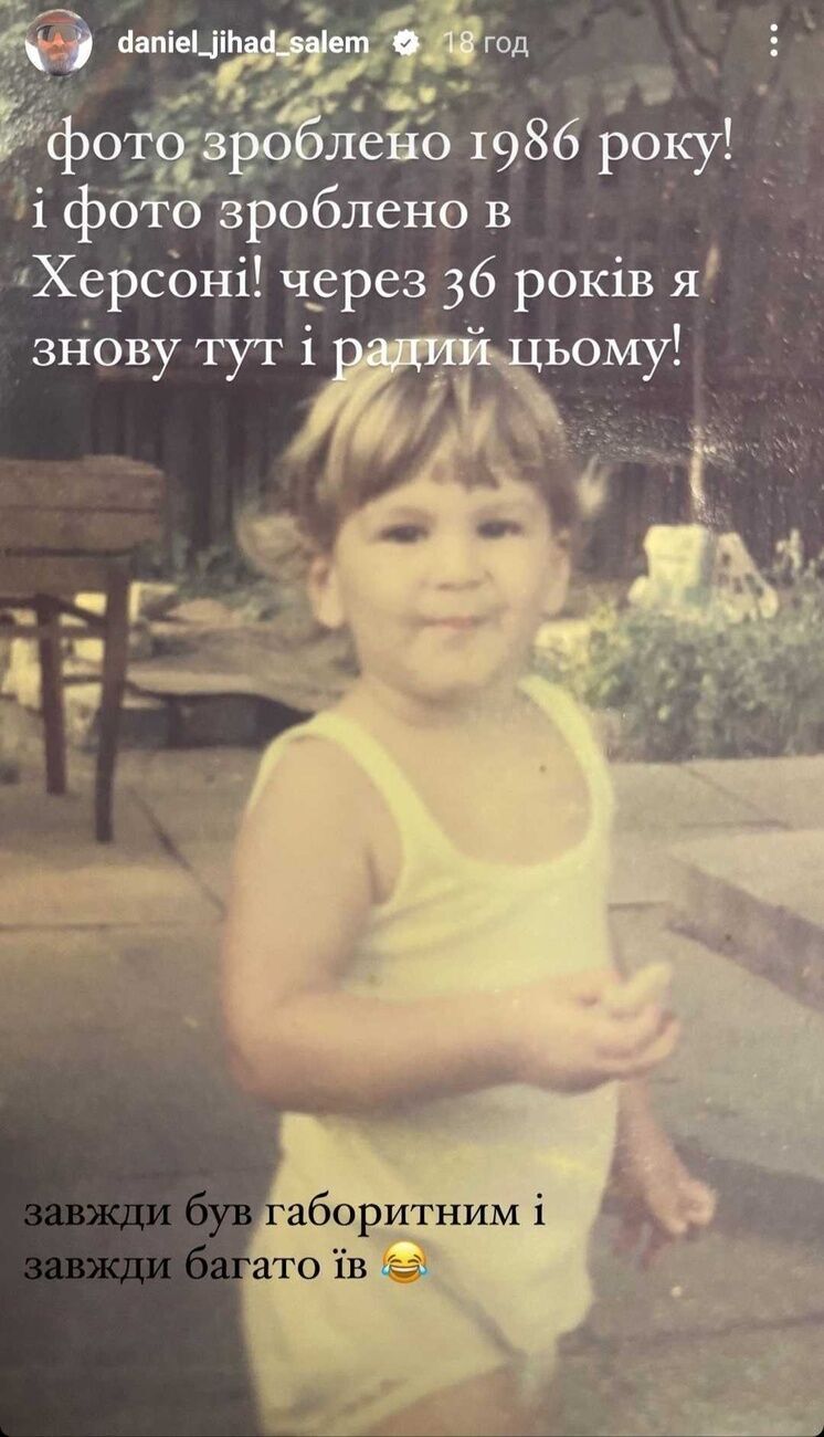 Український ведучий ліванського походження Даніель Салем 27 грудня в Instagram Stories опублікував своє дитяче фото, на якому його зображено у віці двох років.