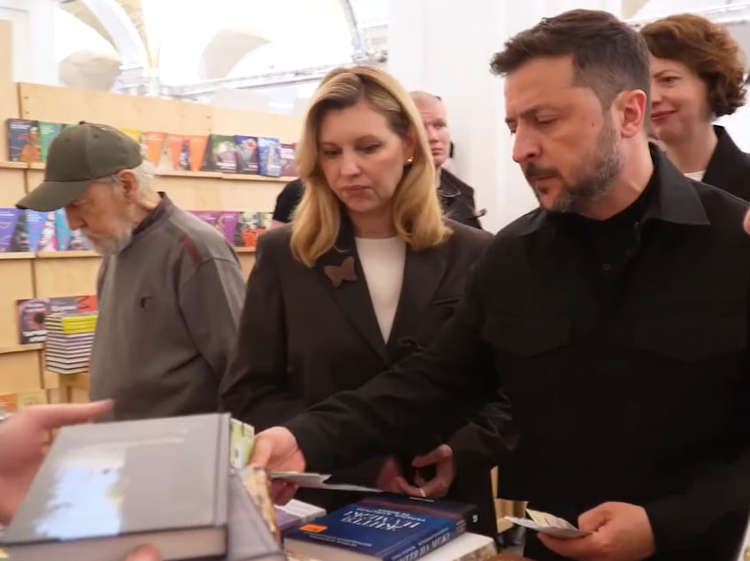 Зеленські щороку відвідують "Книжковий арсенал". 2023 року вони купили 12 книжок. 2019 року президенту на фестивалі подарували книжку "Політика для початківців".