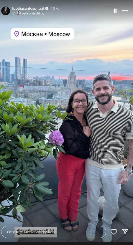 Бразильська актриса Луселія Сантос разом зі своїм сином і колегою Педро Нешлінгом засвітилася у столиці країни-агресора РФ Москві. Відповідне фото вона розмістила 4 червня в Instagram Stories.