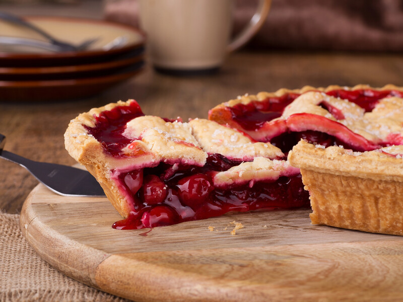- У форму викласти тісто, поверх нього – вишні. Закрити ще одним шаром тіста й заліпити краї.