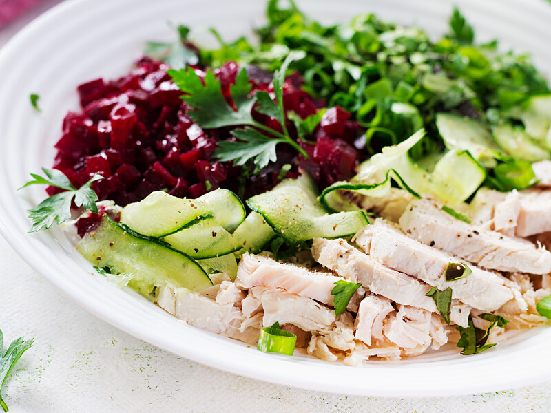 Редакція українського видання Ukr.Media 25 квітня опублікувала рецепт смачного салату з буряка, огірків, квасолі й курячого м'яса.