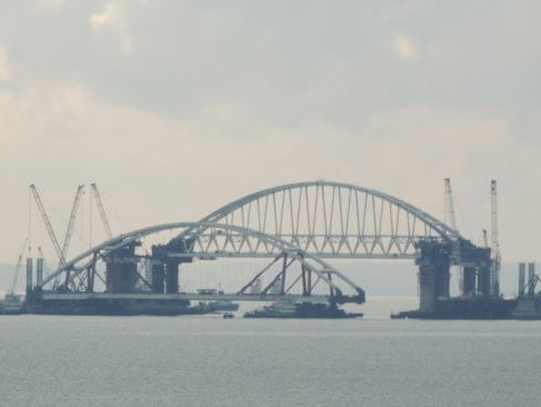 В анексованій Росією Керчі 11 жовтня до споруджуваного Керченського мосту на плавучих платформах доправили автодорожню арку, яку збираються встановити на опорах мосту. Про це повідомляє "РИА Новости".