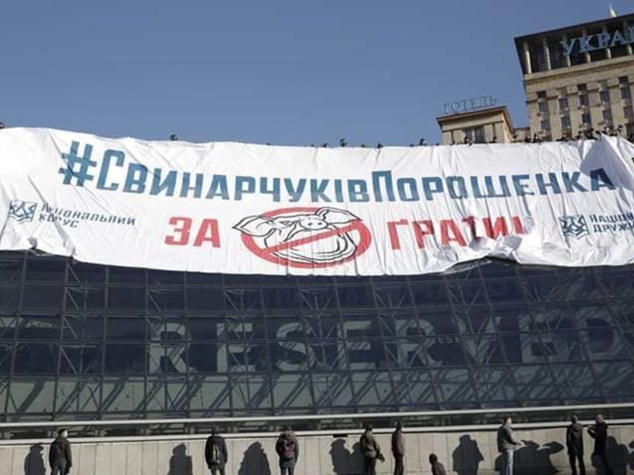 16 березня на Майдані Незалежності в Києві відбувалася акція протесту "Свинарчуків Порошенка за ґрати", організована "Нацкорпусом". Націоналісти закликали українців вимагати покарання для учасників скандалу, пов'язаного з корупцією в оборонній сфері України.