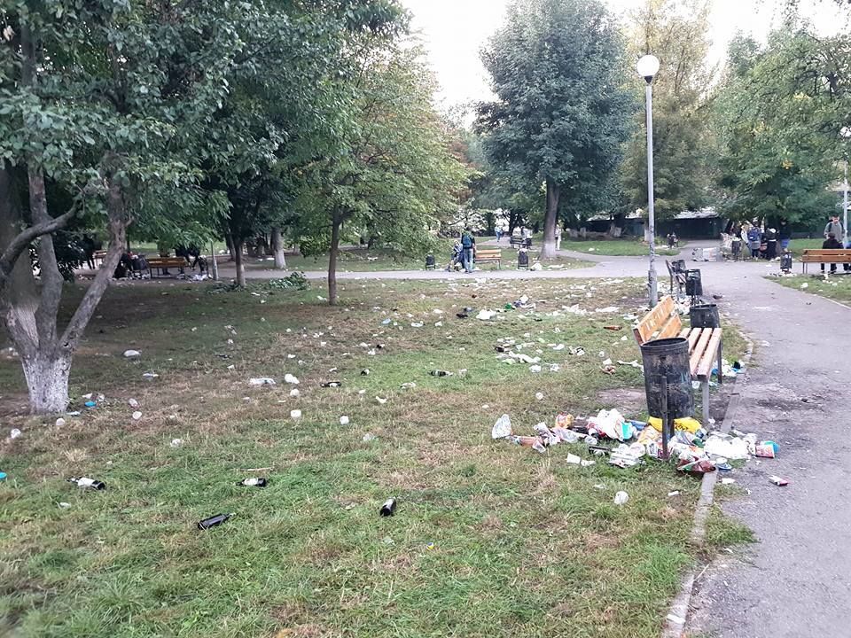 Після посвяти в студенти в парку на території Київського політехнічного інституту (КПІ) на проспекті Перемоги залишилися гори сміття. Відповідні фото на своїй сторінці у Facebook 31 серпня оприлюднив поліцейський Дмитро Крештофов.